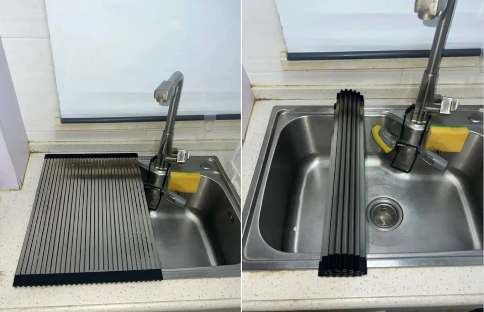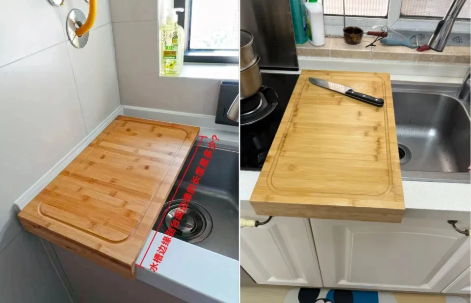 网友@阴阳怪气:空间太小,切菜没有位置,网购一个水槽切菜板,实现功能,不用的时候还可以折起来