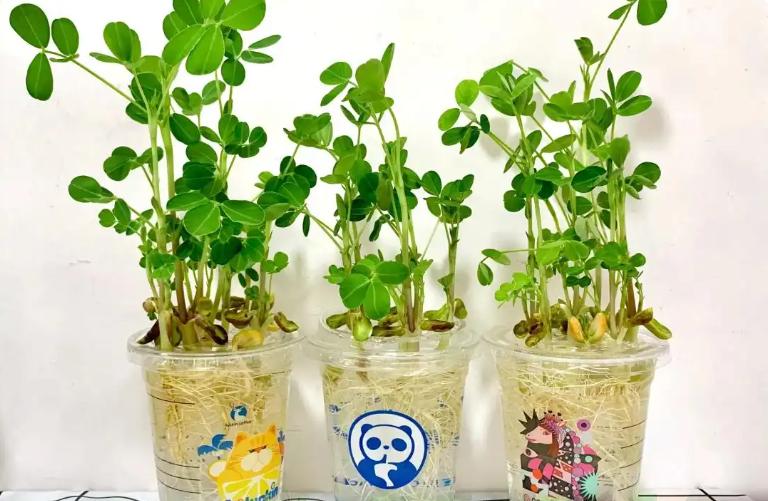 甚至还可以用来当花盆,水培植物。小油菜根、白菜根、萝卜头、发芽的红薯、土豆、花生,统统可以水培的。家里老人以为我攒的这些杯子是破烂,没想到我还把阳台捣腾成了一个迷你菜园。