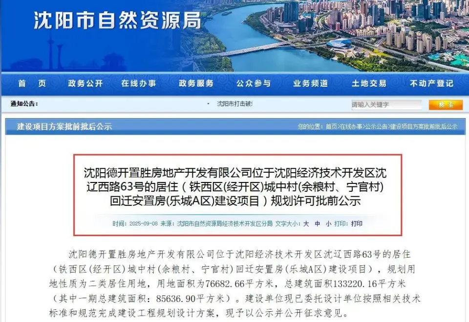 该项目位于宁官村,原开发单位为沈阳鹏臣房地产开发有限公司,占地总面积约20.41万平方米。项目建设用地面积为16.72万平方米。规划建设面积为40万平方米,其中村民回迁面积14万平方米,商品房26万平方米。